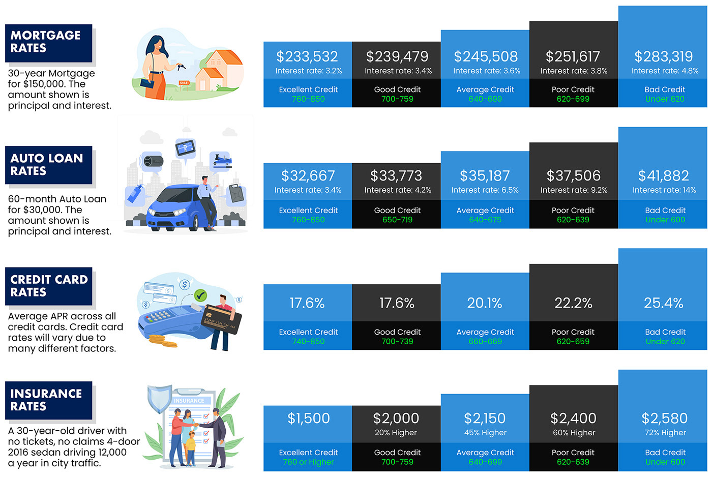 As your scores go up and negative accounts go away, your rates to loans and other services decrease.